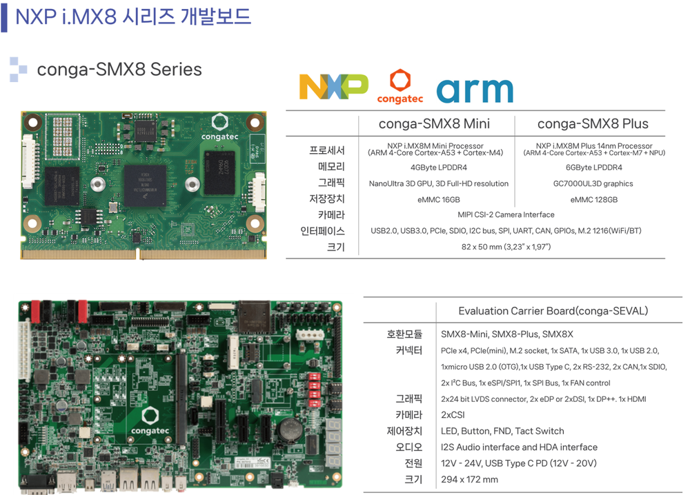 I2S Audio interface and HDA interfaceButtons and LED’sPower button | Reset button | Sleep button | LID button | various indication LEDsFeature Connector1x Standard congatec Feature ConnectorPostcode4x 7-Segment Postcode LEDs connected to GP_I2C busTemperatureOperating: -40 .. +85°C | Storage: -20 .. +80°CPower InputATX Power Supply | 12V - 24V Wide Range Carrier Board Supply | 3.0V - 5.25V Wide Range Module Supply | USB Type C PD (12V - 20V)HumidityOperating: 10 - 90% r. H. non cond. | Storage: 5 - 95% r. H. non cond.Size294 x 172 mm