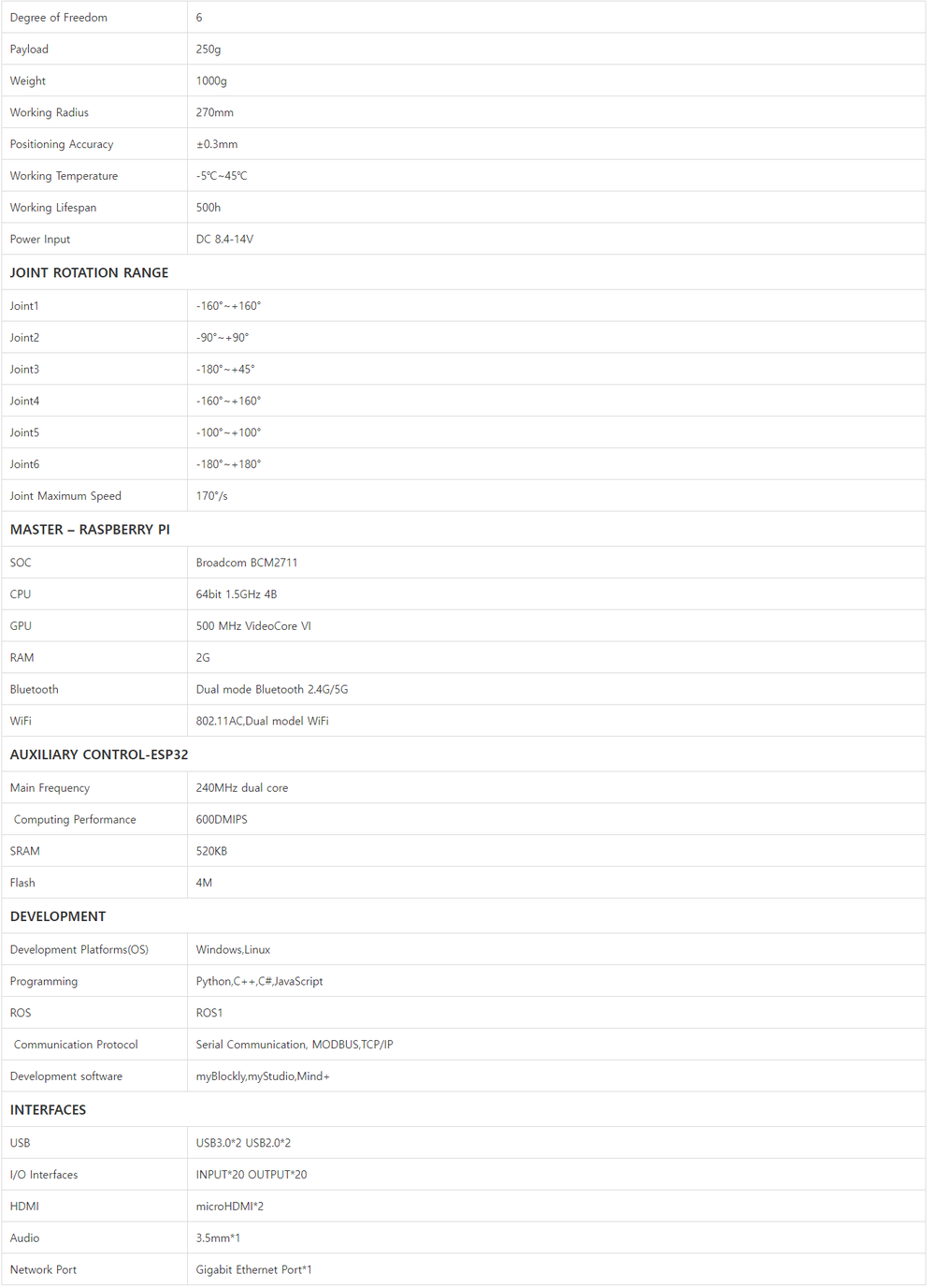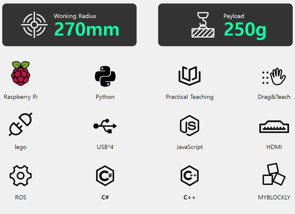 작고 가벼운 mechArm은 컴팩트한 본체로 구성되며 다양한 확장인터페이스를 통해 창의적인 로봇 교육을 이끌어 갈 수 있습니다.