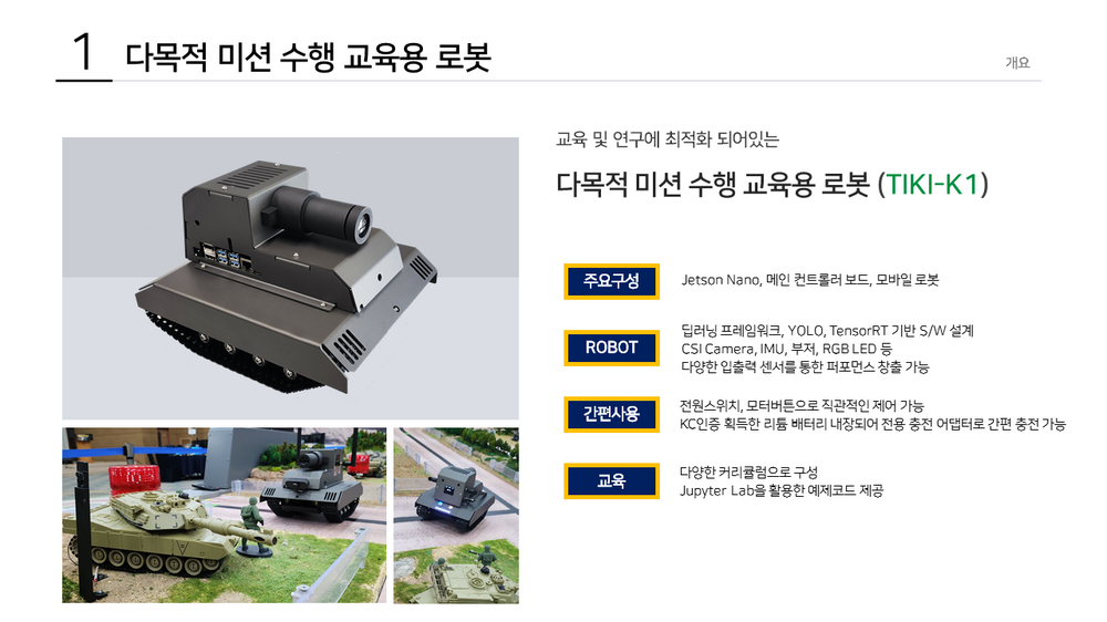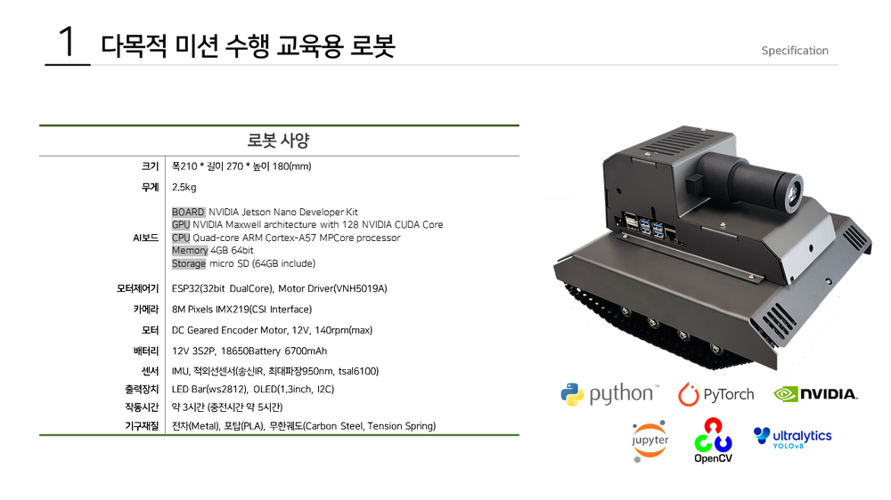 - 다양한 미션 수행: 라인트레이싱, 장애물 회피, 화물 운반, 원격 탐사 등